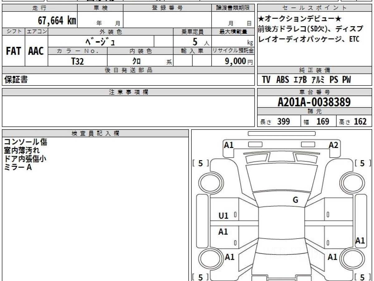 Оценка аукциона: 4, что гарантирует хорошее техническое и косметическое состояние кузова и салона.