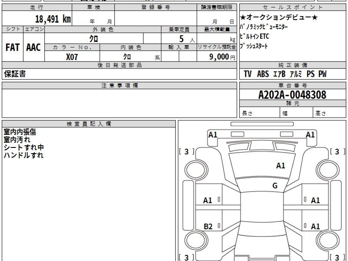 Оценка аукциона: 4, что гарантирует хорошее техническое и косметическое состояние кузова и салона.