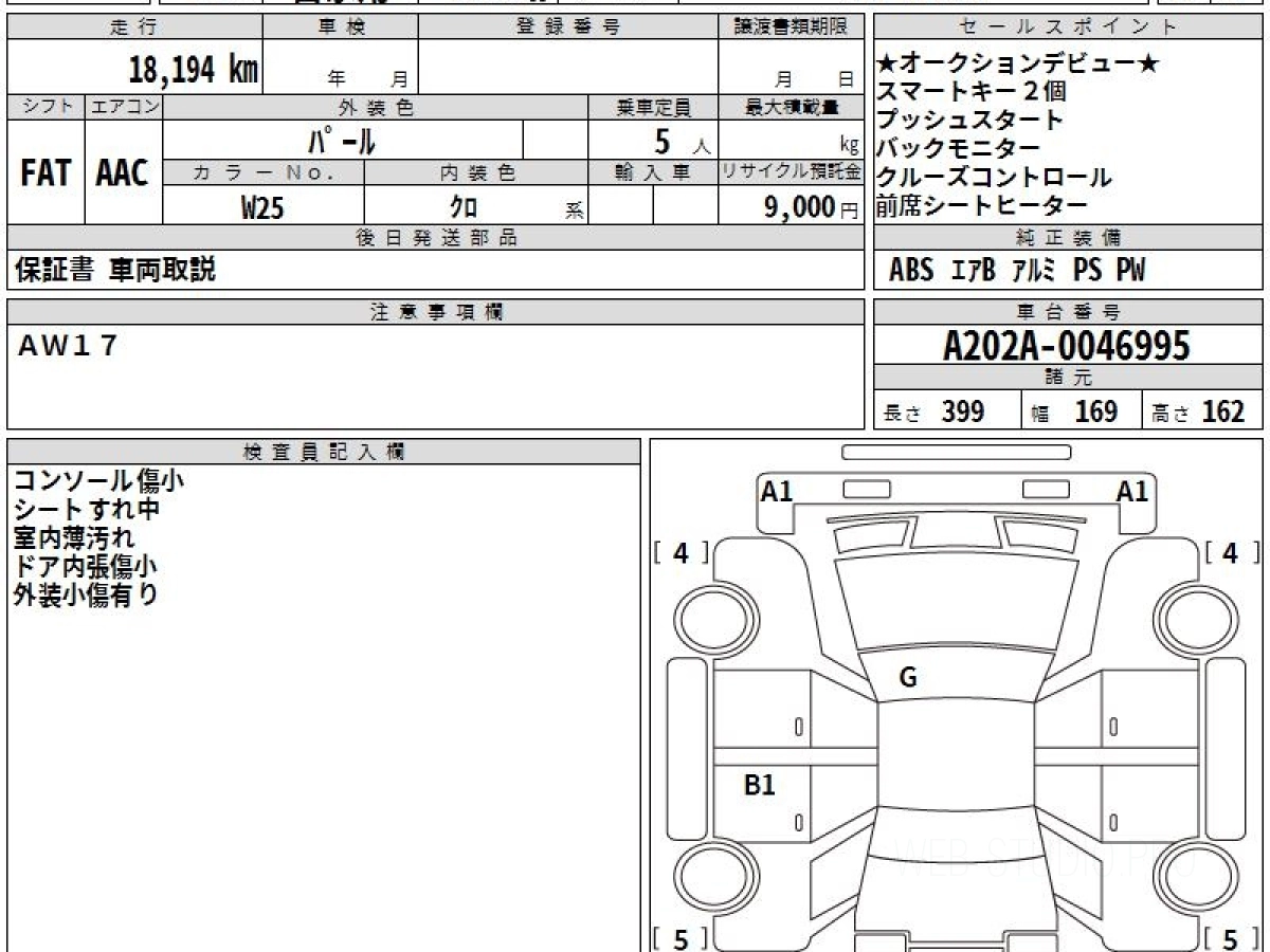 Оценка аукциона: 4.5, что гарантирует хорошее техническое и косметическое состояние кузова и салона.