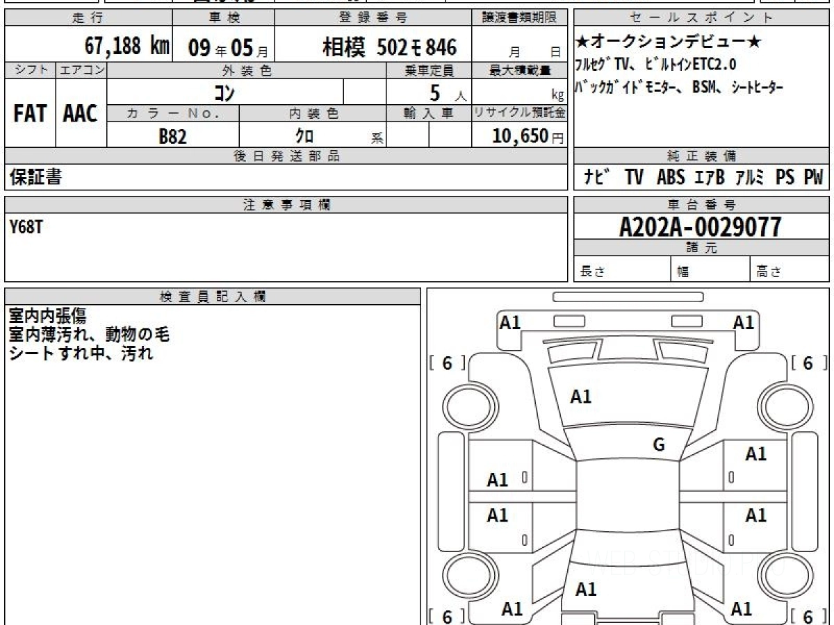 Оценка аукциона: 4, что гарантирует хорошее техническое и косметическое состояние кузова и салона.