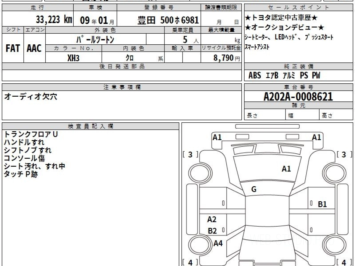 Оценка аукциона: RA, что гарантирует хорошее техническое и косметическое состояние кузова и салона.