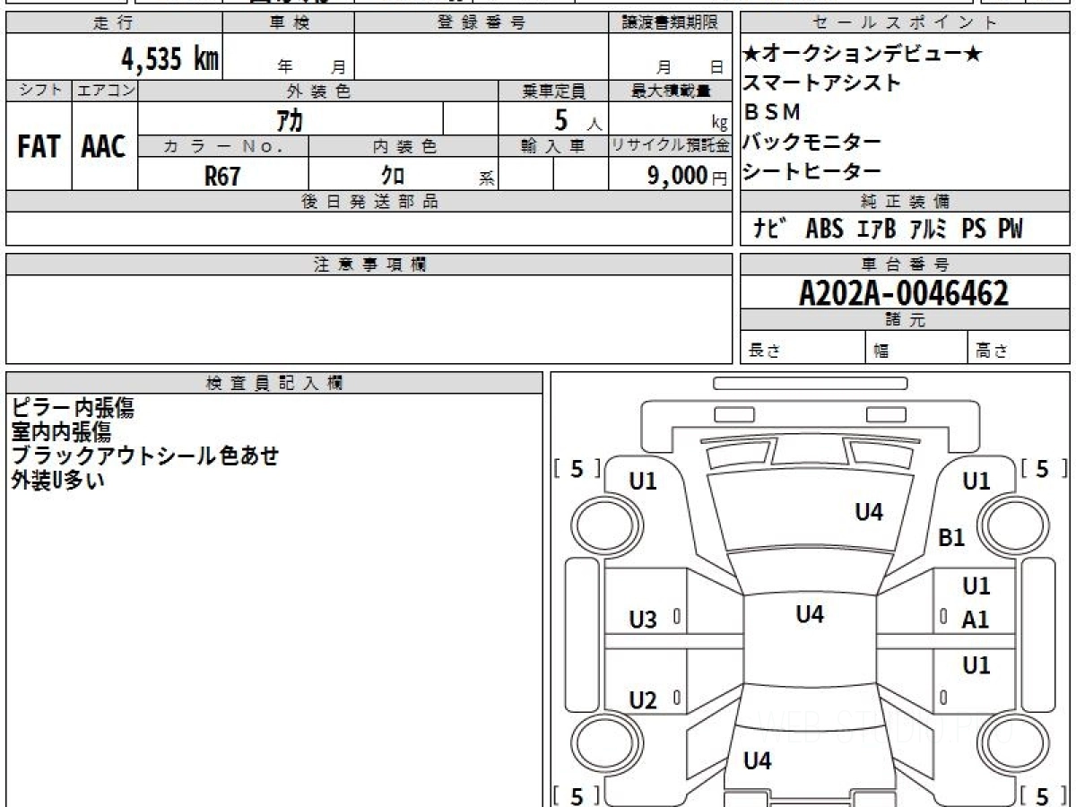 Оценка аукциона: 3, что гарантирует хорошее техническое и косметическое состояние кузова и салона.
