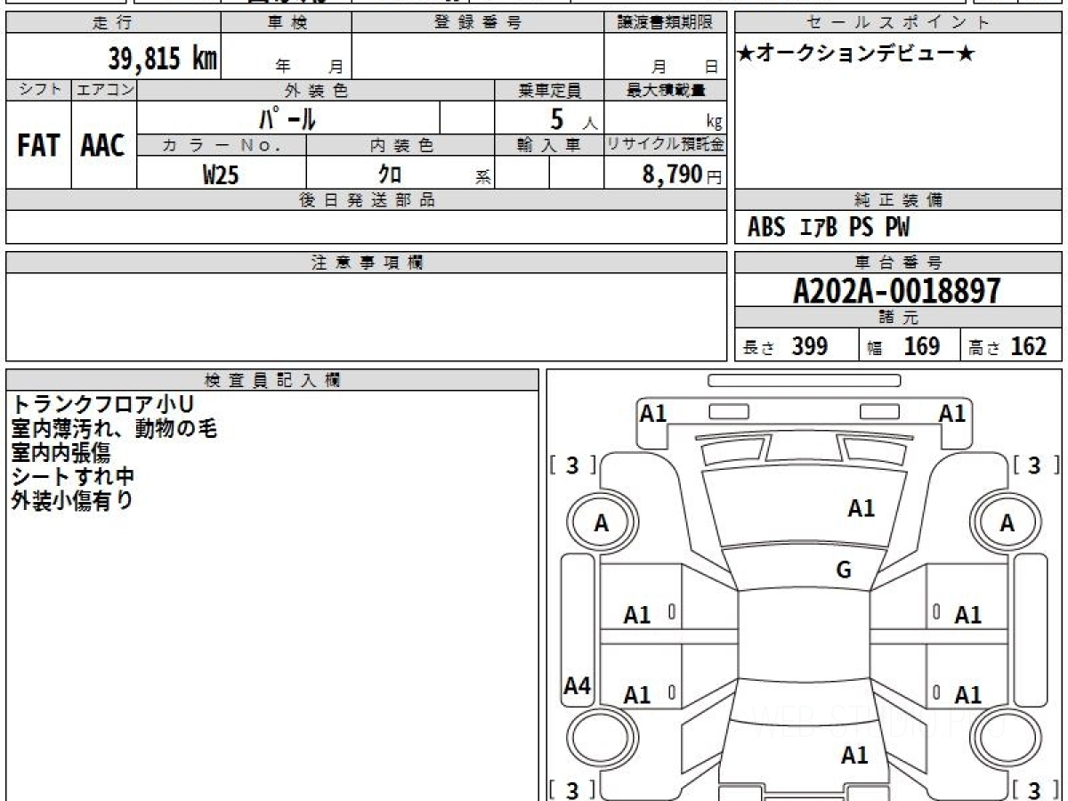 Оценка аукциона: 3.5, что гарантирует хорошее техническое и косметическое состояние кузова и салона.
