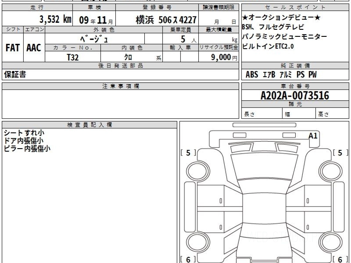 Оценка аукциона: 5, что гарантирует хорошее техническое и косметическое состояние кузова и салона.