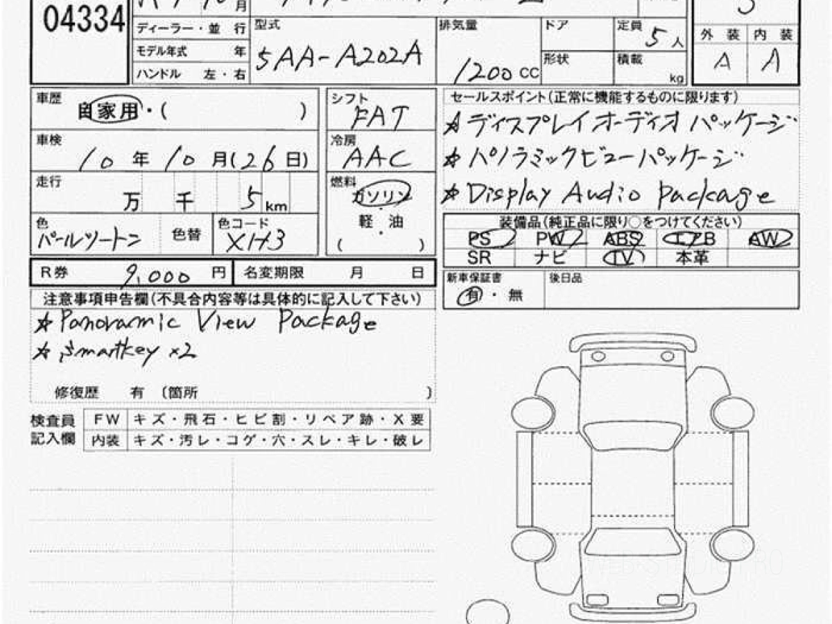 Оценка аукциона: S, что гарантирует хорошее техническое и косметическое состояние кузова и салона.