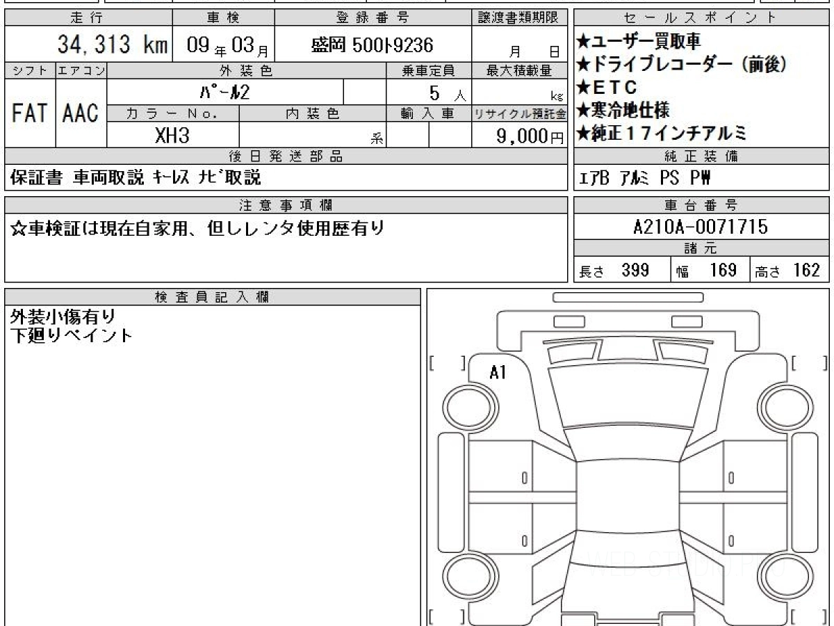 Оценка аукциона: 5, что гарантирует хорошее техническое и косметическое состояние кузова и салона.