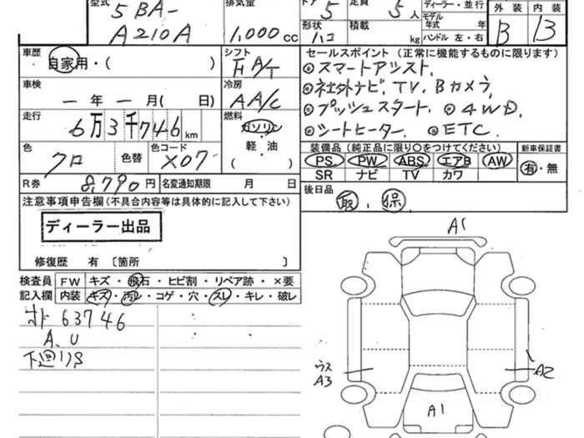 Номер кузова: A210A.