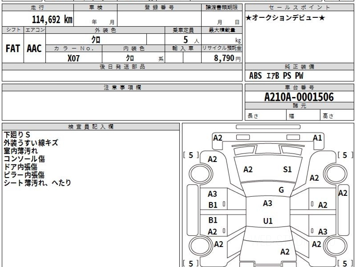 Номер кузова: A210A.