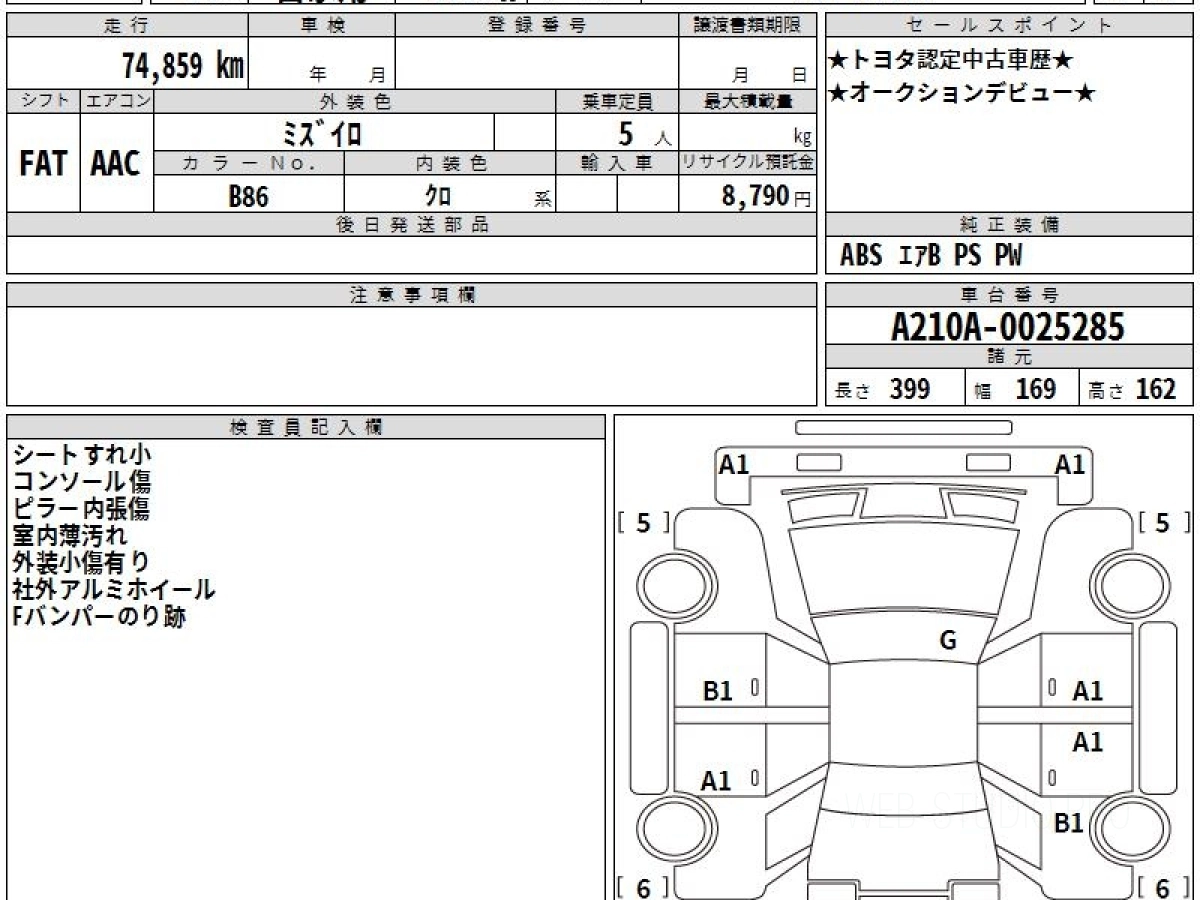 Номер кузова: A210A.