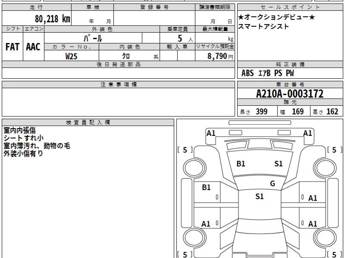 Оценка аукциона: 4, что гарантирует хорошее техническое и косметическое состояние кузова и салона.