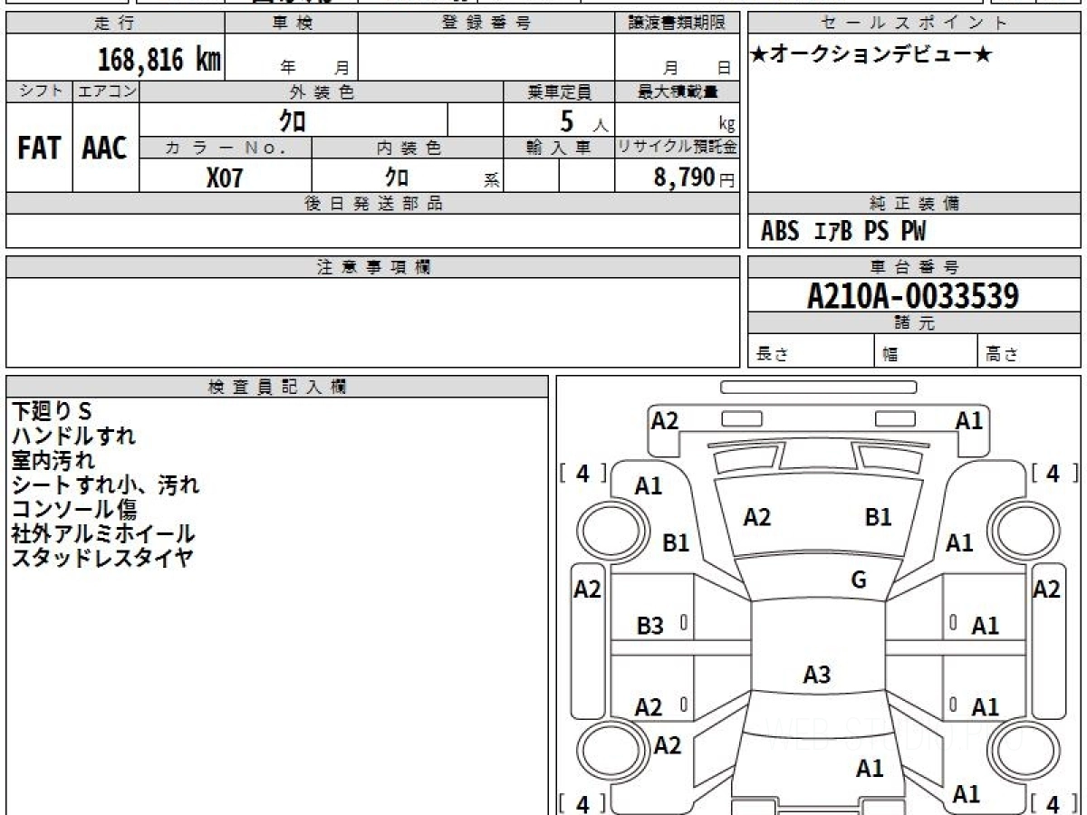 Номер кузова: A210A.