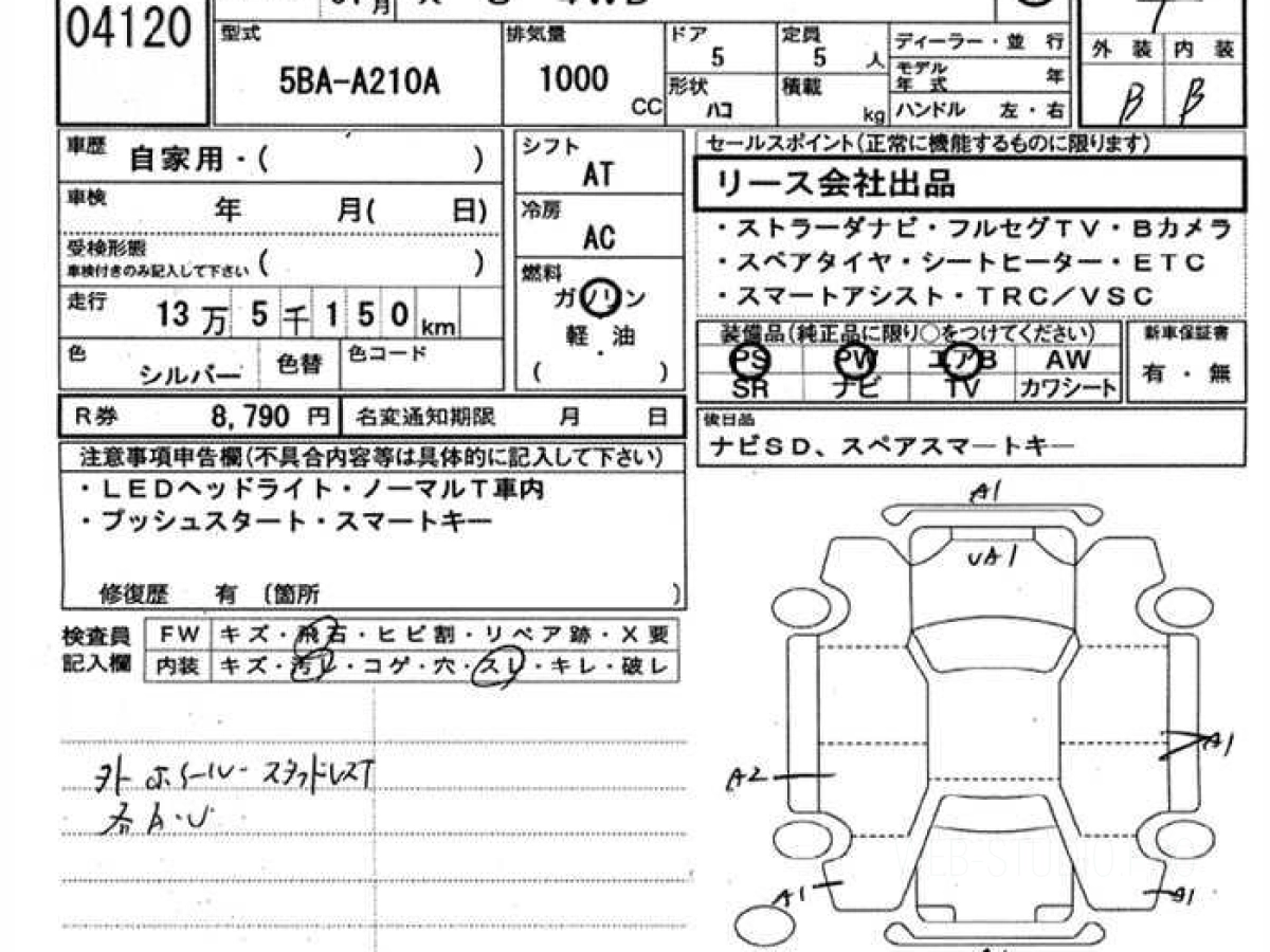 Оценка аукциона: 4, что гарантирует хорошее техническое и косметическое состояние кузова и салона.