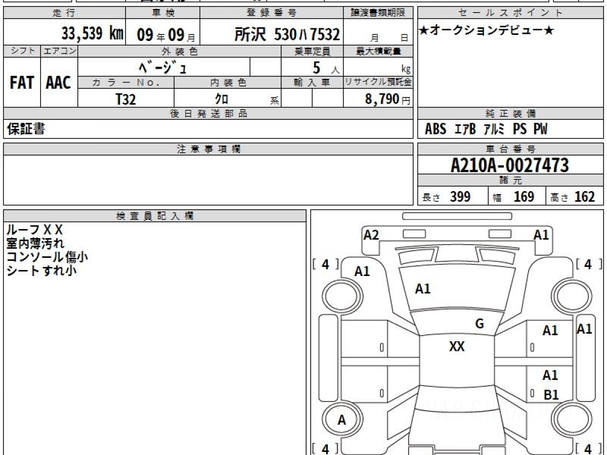 Оценка аукциона: R, что гарантирует хорошее техническое и косметическое состояние кузова и салона.