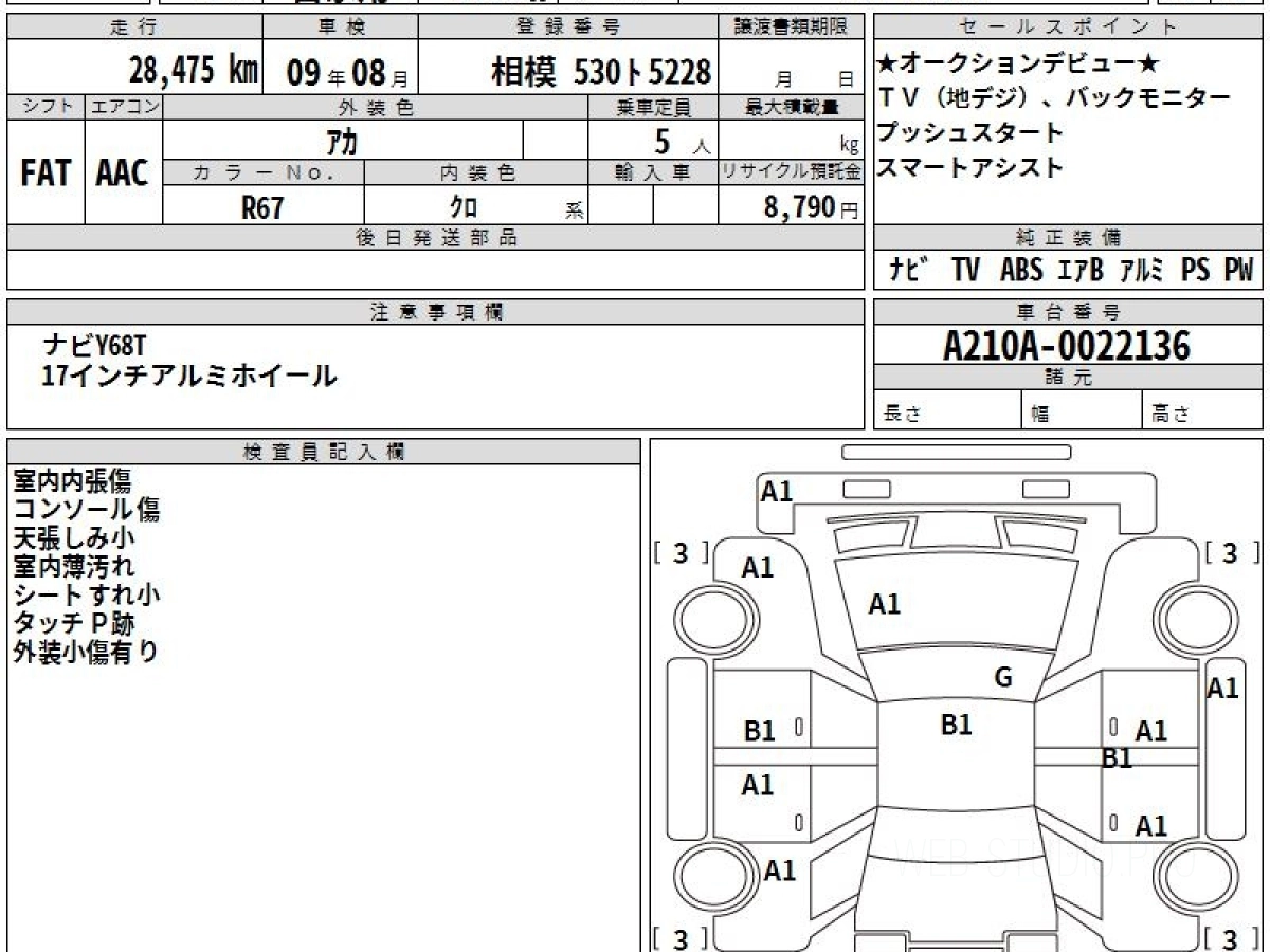 Оценка аукциона: 4, что гарантирует хорошее техническое и косметическое состояние кузова и салона.