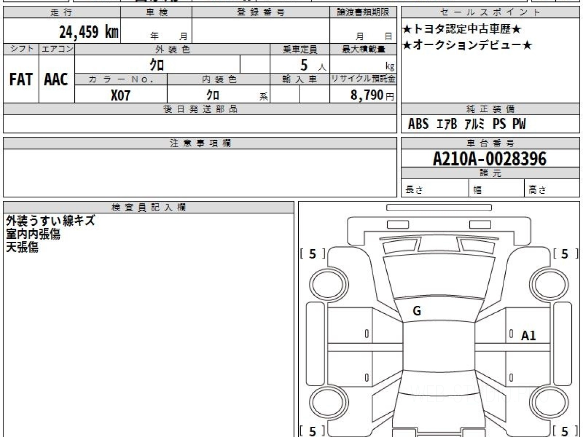 Номер кузова: A210A.