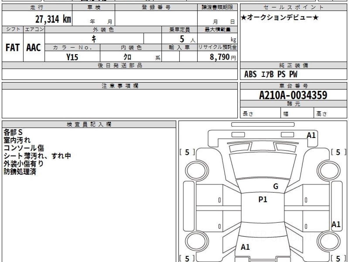 Номер кузова: A210A.