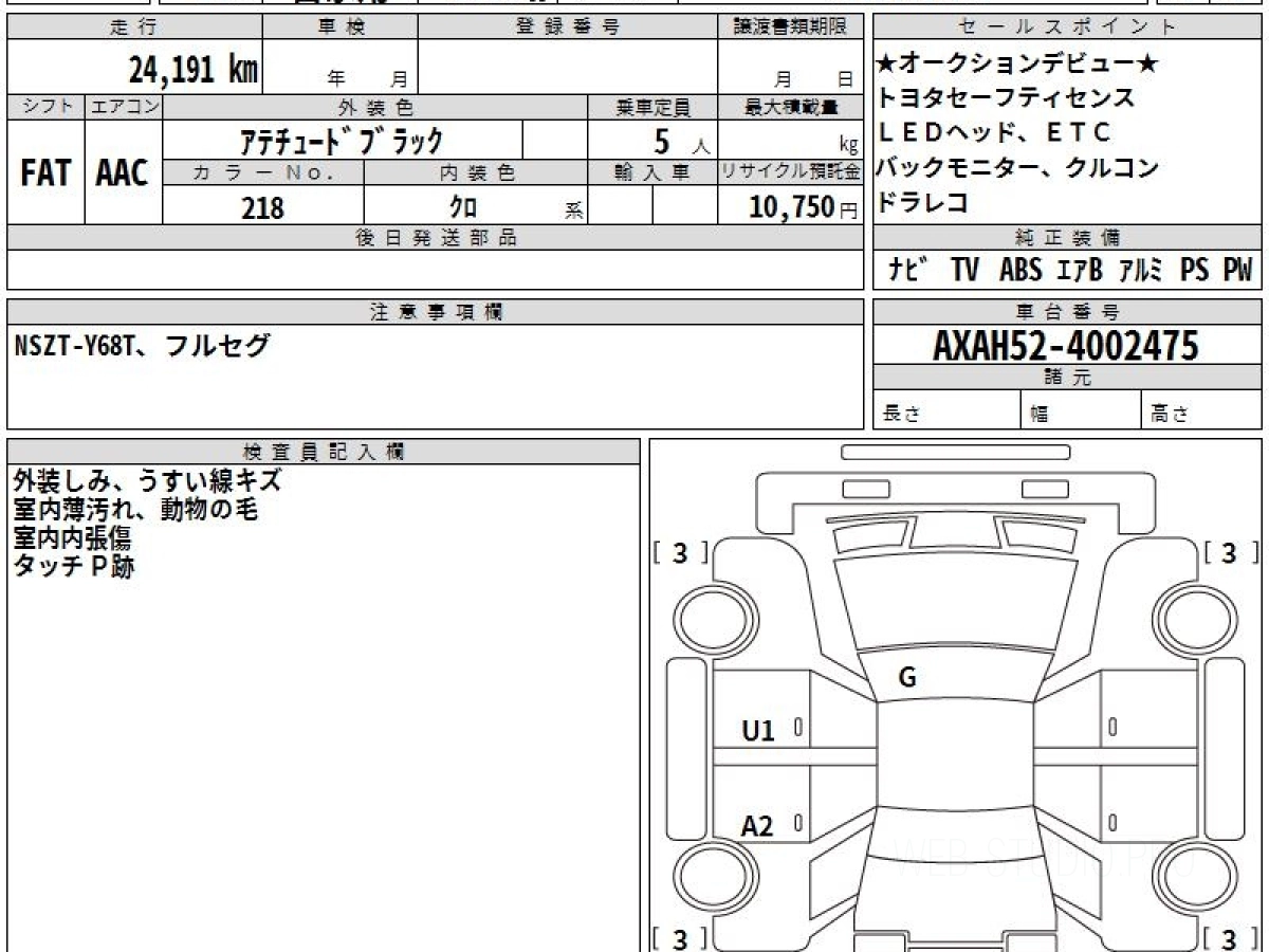 Номер кузова: AXAH52.