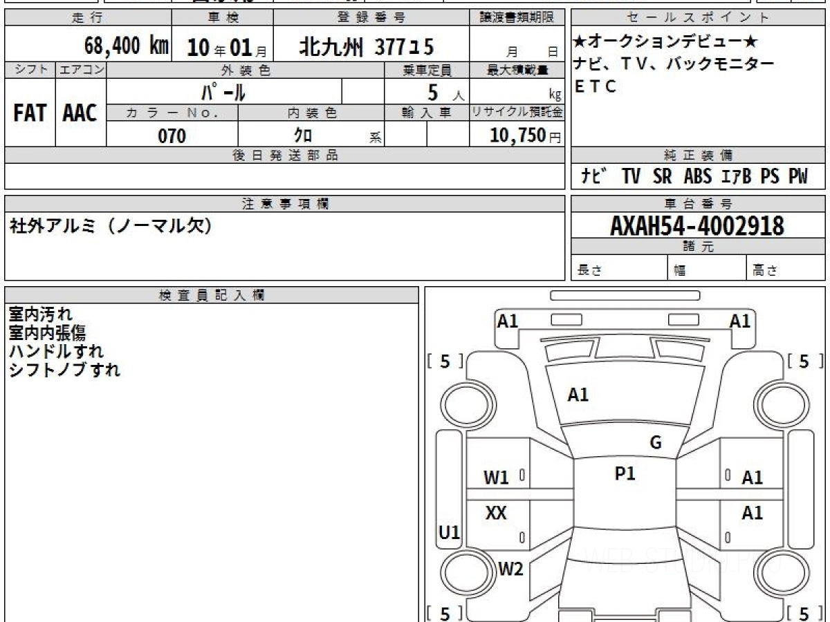 Оценка аукциона: 4, что гарантирует хорошее техническое и косметическое состояние кузова и салона.