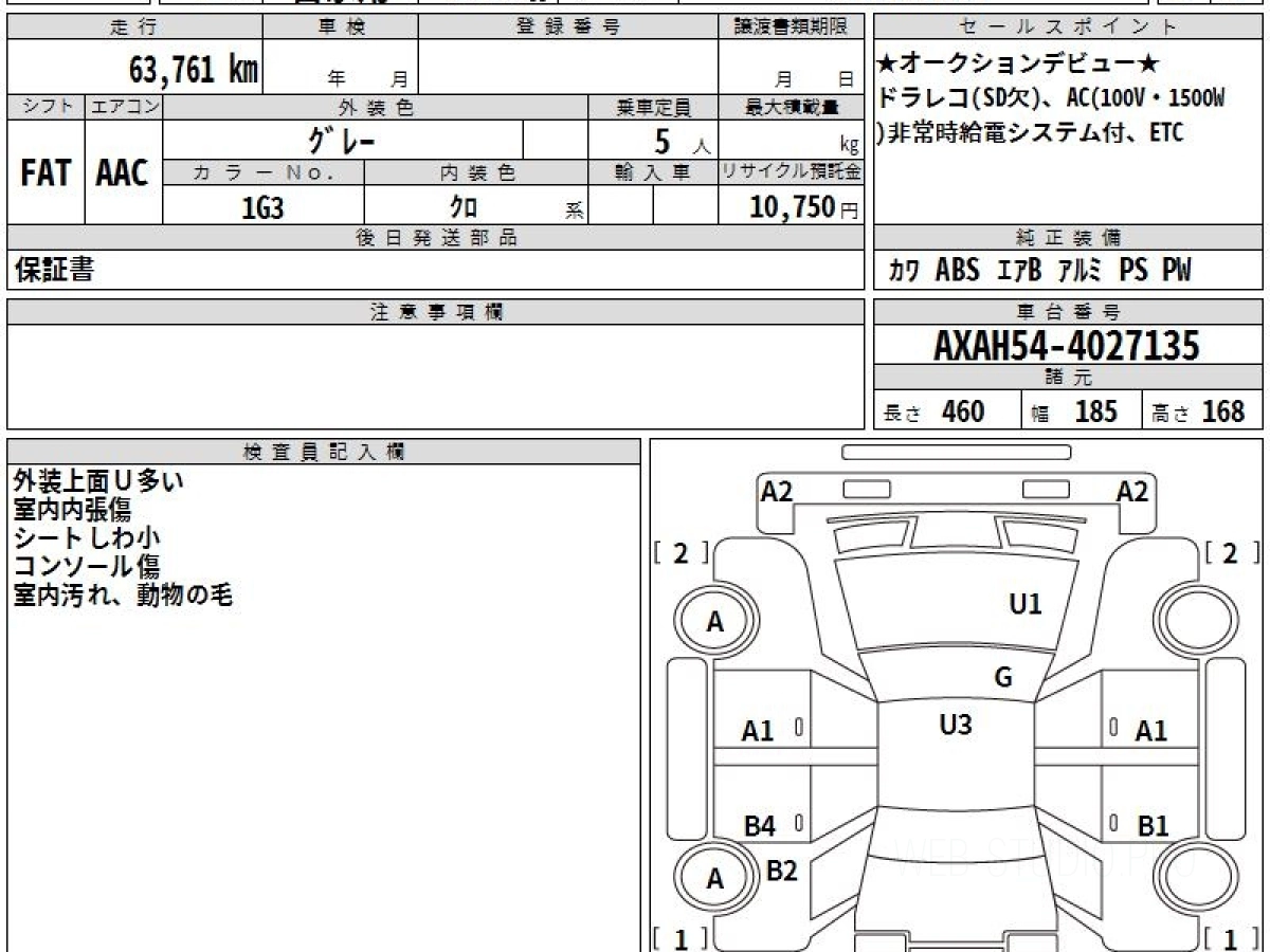 Оценка аукциона: 3.5, что гарантирует хорошее техническое и косметическое состояние кузова и салона.