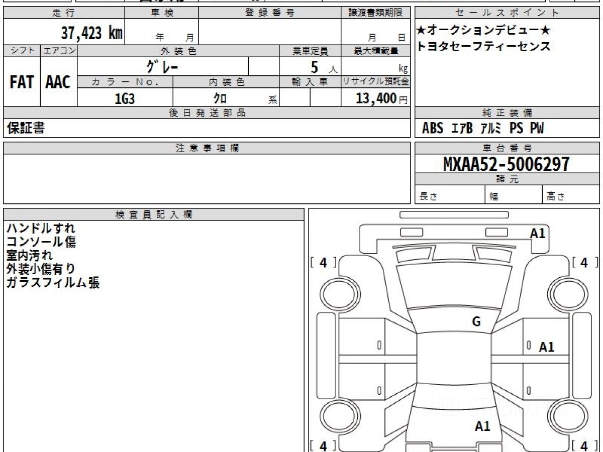 Оценка аукциона: 4.5, что гарантирует хорошее техническое и косметическое состояние кузова и салона.