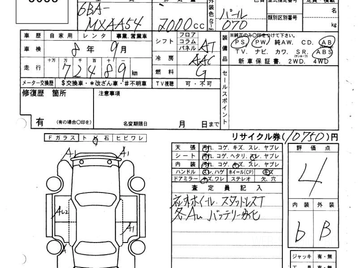 Оценка аукциона: 4, что гарантирует хорошее техническое и косметическое состояние кузова и салона.