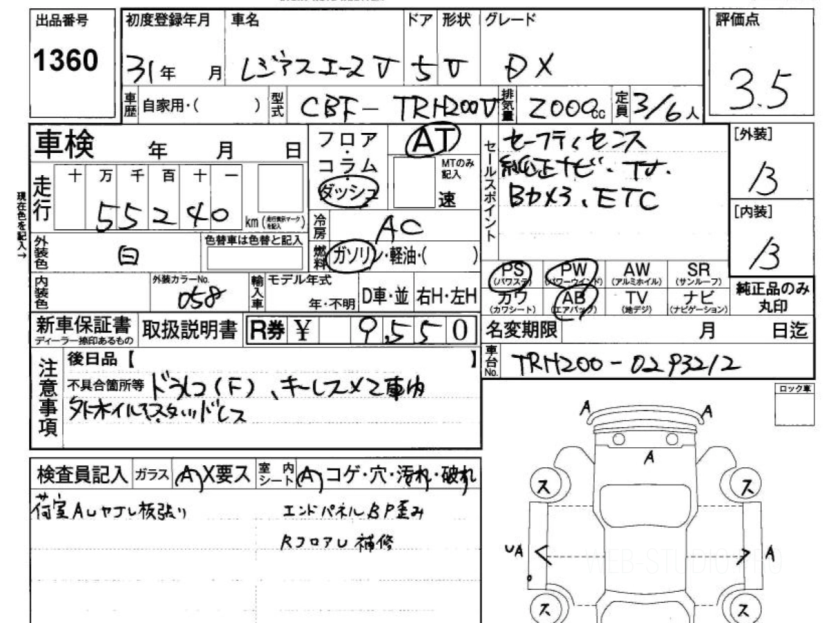 Оценка аукциона: 3.5, что гарантирует хорошее техническое и косметическое состояние кузова и салона.