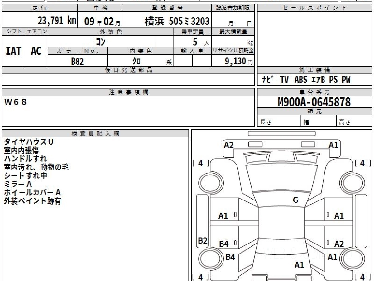 Номер кузова: M900A.