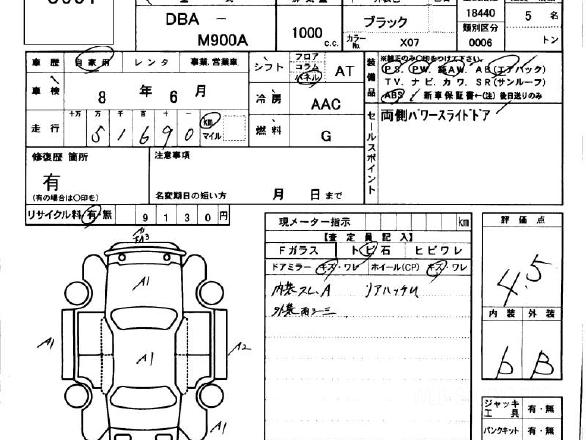 Оценка аукциона: 4.5, что гарантирует хорошее техническое и косметическое состояние кузова и салона.