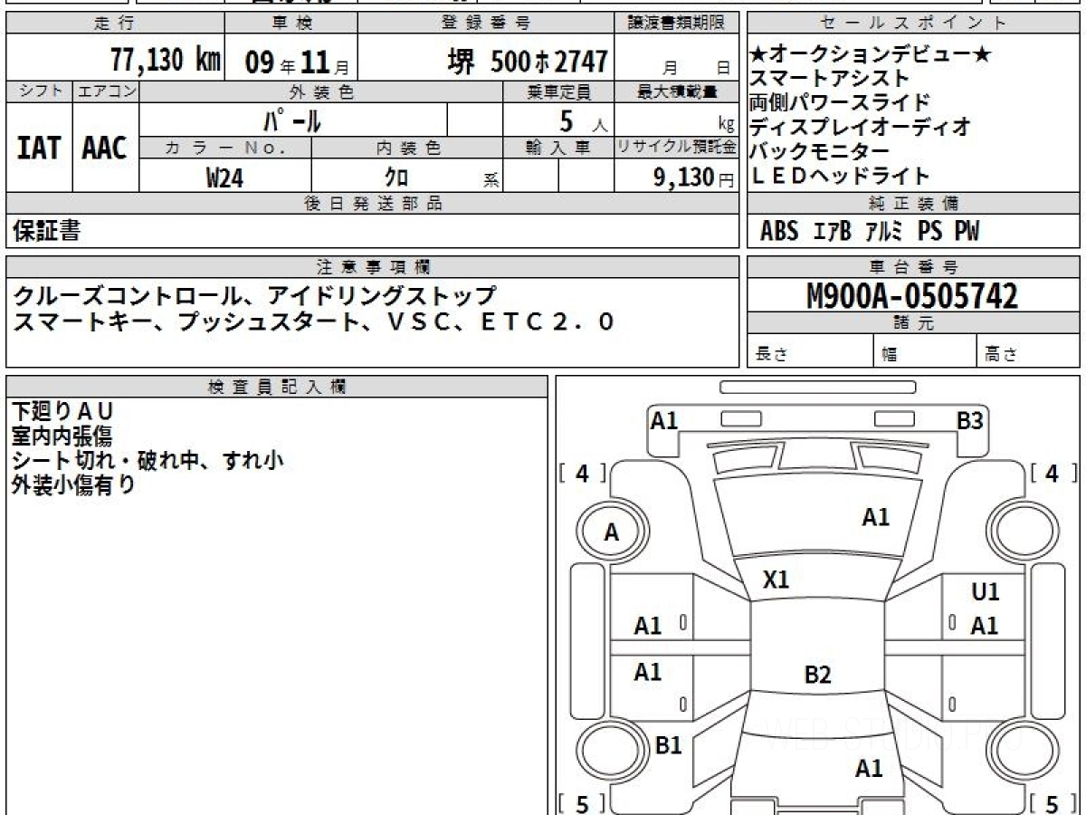Номер кузова: M900A.