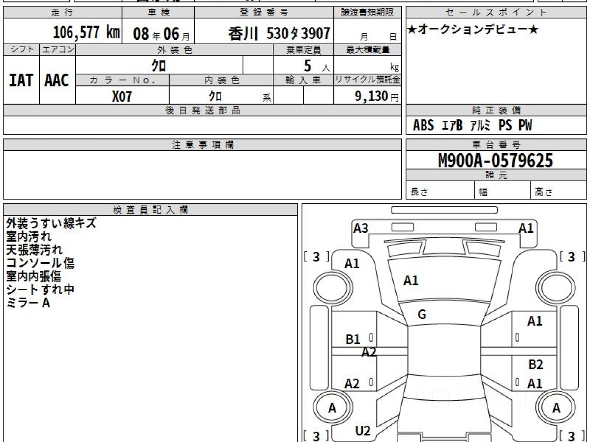 Оценка аукциона: 4, что гарантирует хорошее техническое и косметическое состояние кузова и салона.