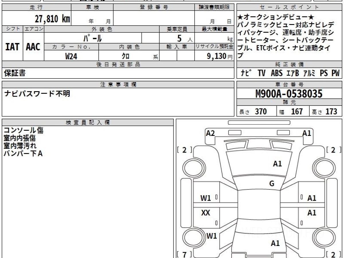 Номер кузова: M900A.