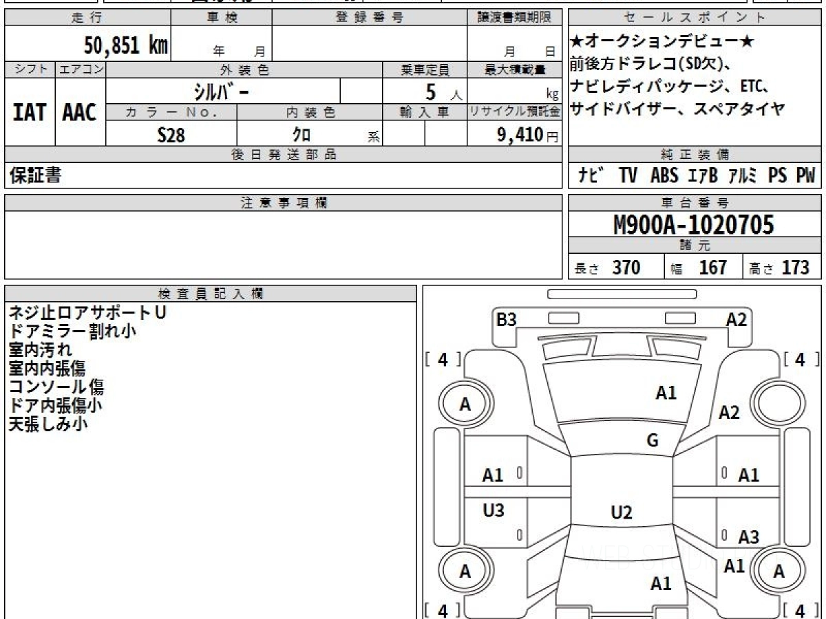 Номер кузова: M900A.