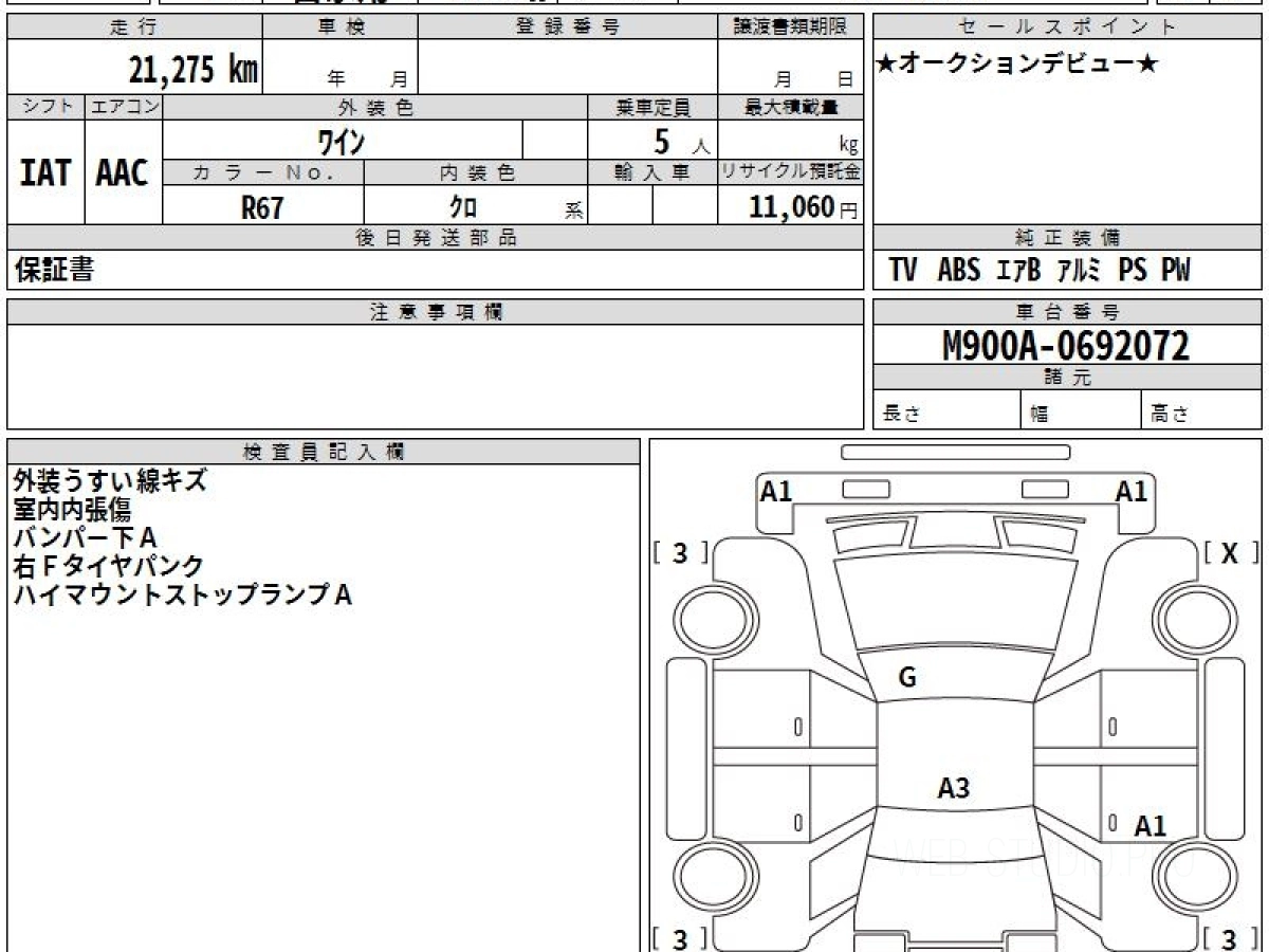 Номер кузова: M900A.