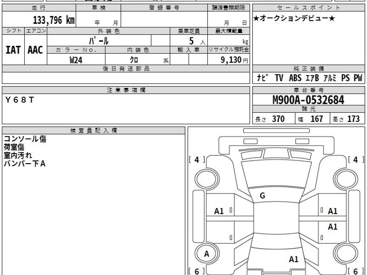 Оценка аукциона: 4, что гарантирует хорошее техническое и косметическое состояние кузова и салона.