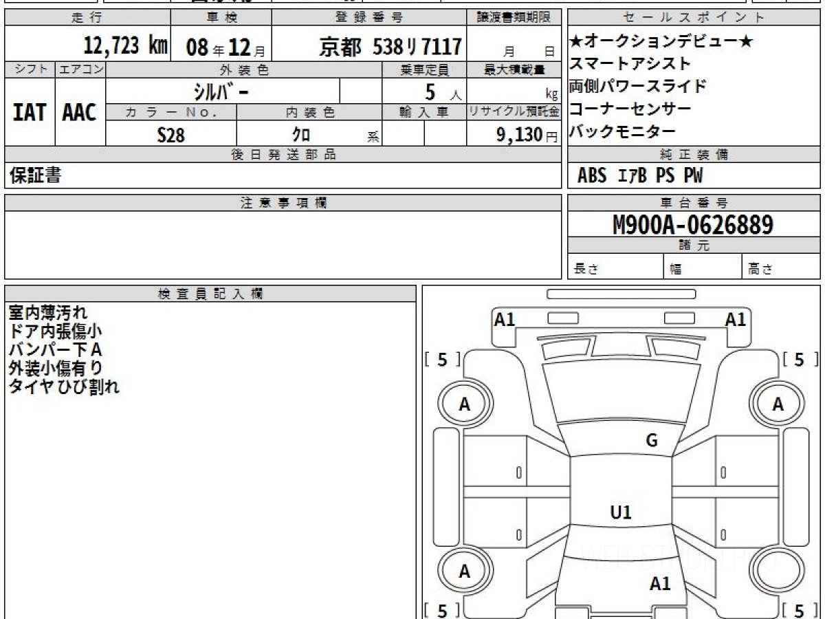 Номер кузова: M900A.