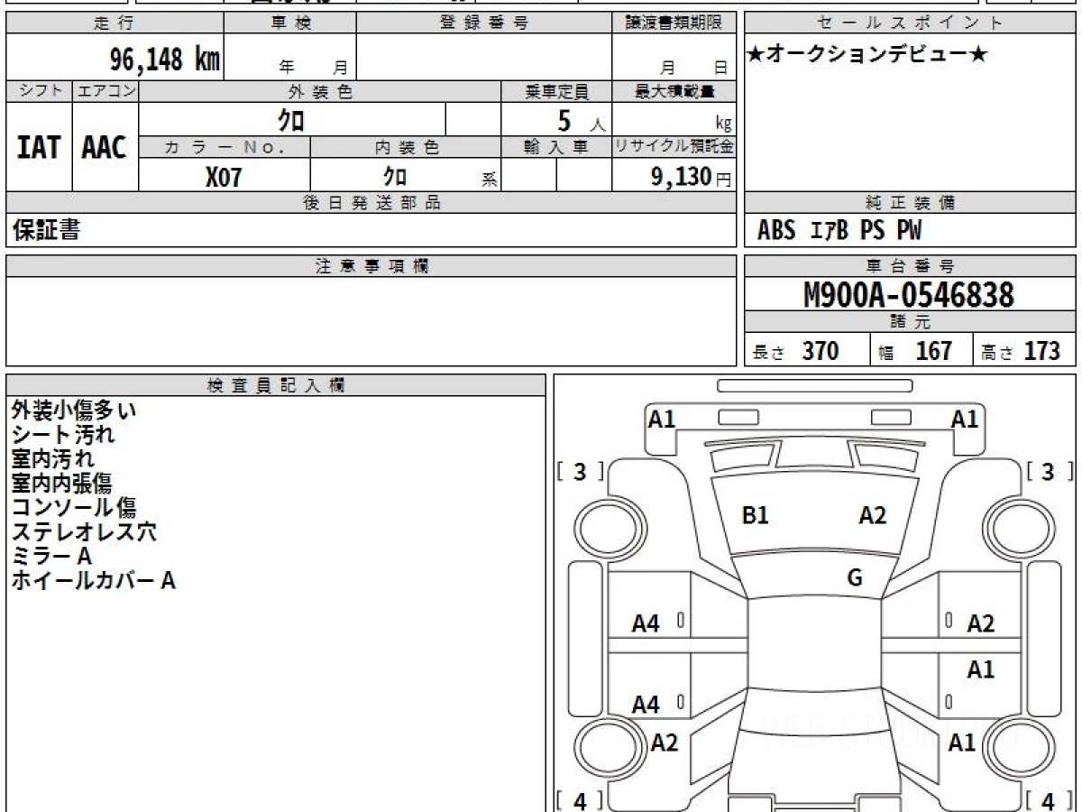 Номер кузова: M900A.
