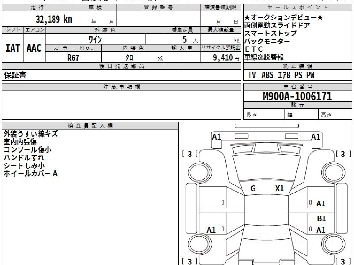 Номер кузова: M900A.