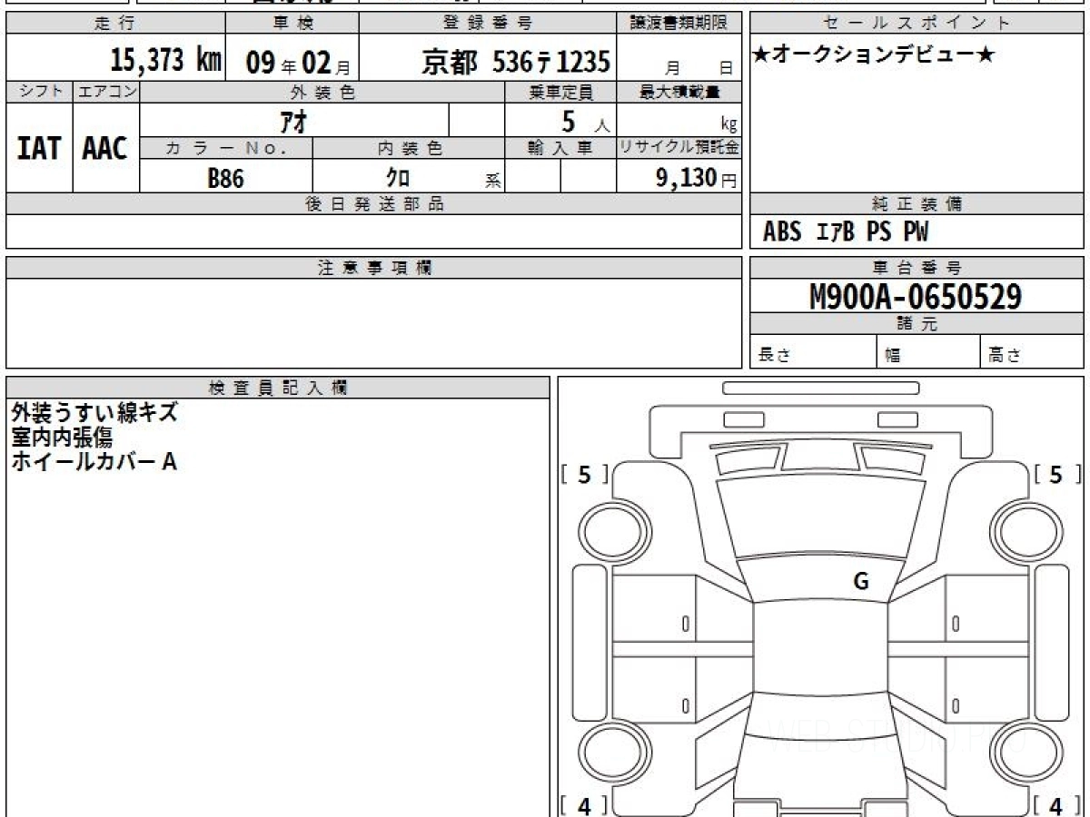Номер кузова: M900A.