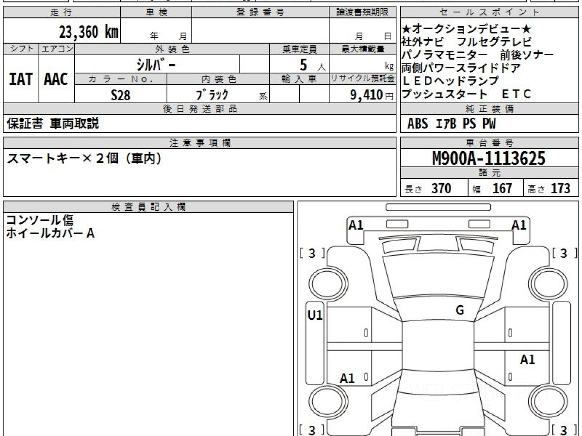 Номер кузова: M900A.