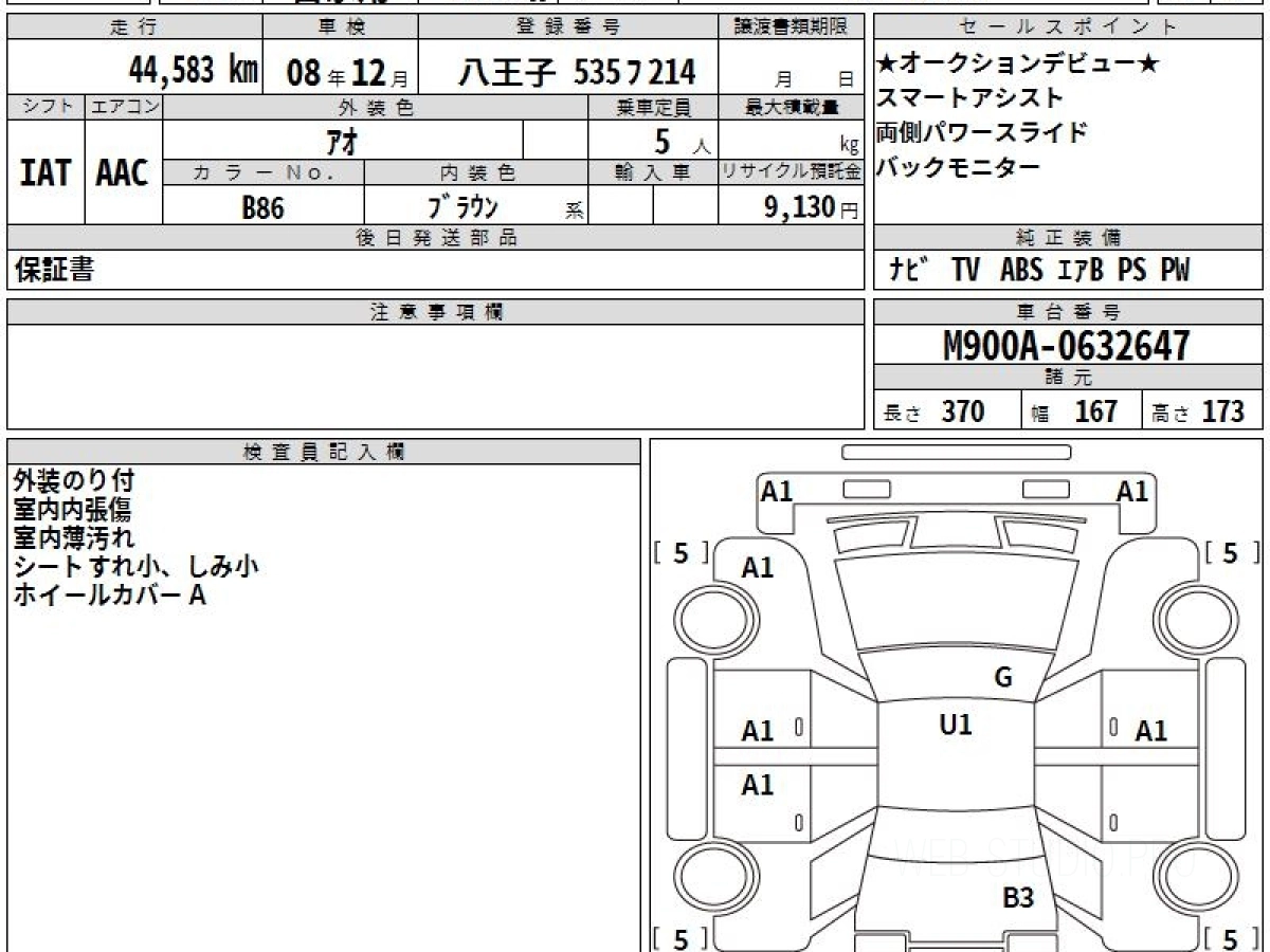 Оценка аукциона: 4, что гарантирует хорошее техническое и косметическое состояние кузова и салона.