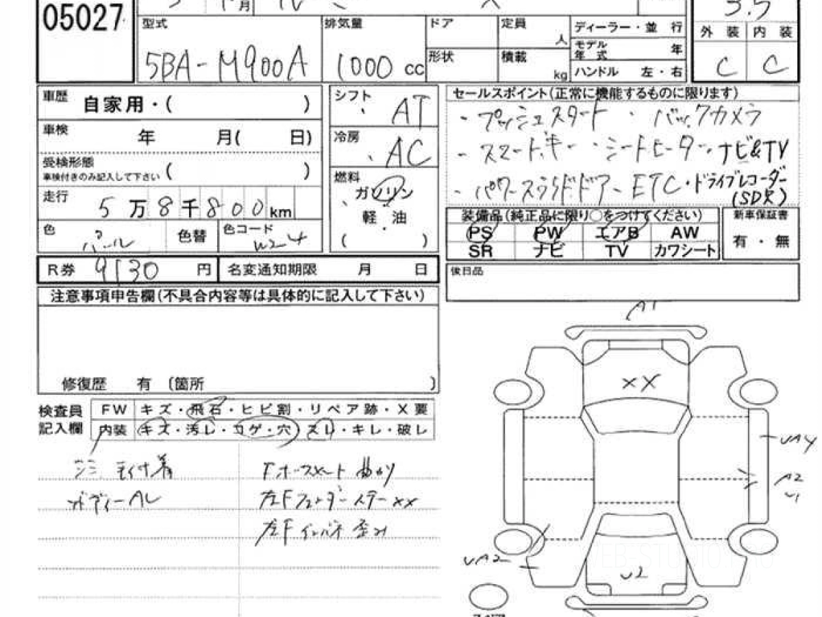 Номер кузова: M900A.