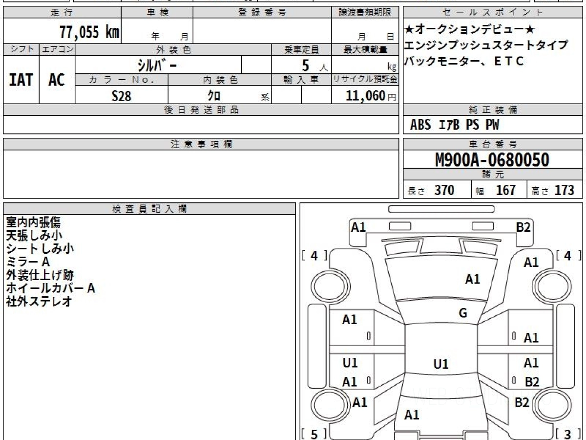 Номер кузова: M900A.
