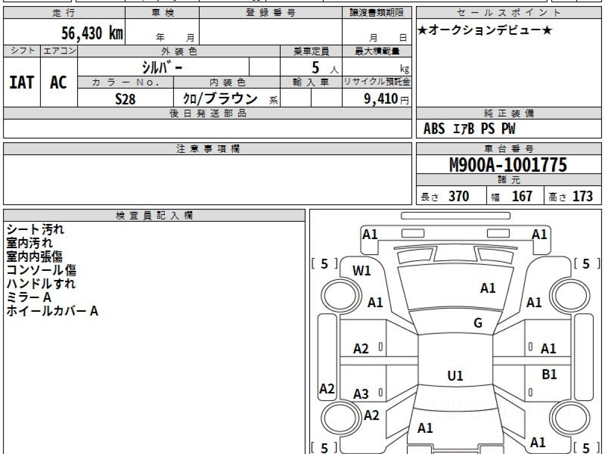 Номер кузова: M900A.