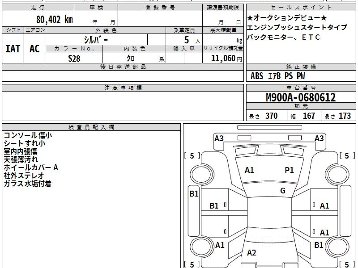Номер кузова: M900A.