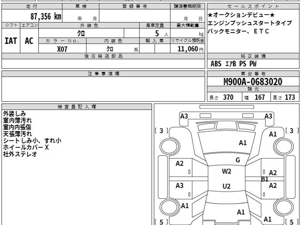 Номер кузова: M900A.
