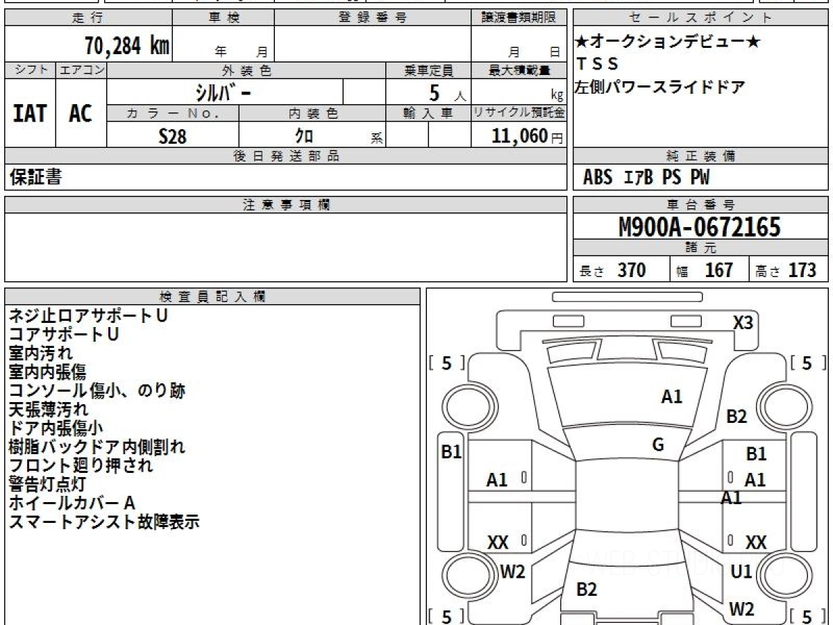 Номер кузова: M900A.
