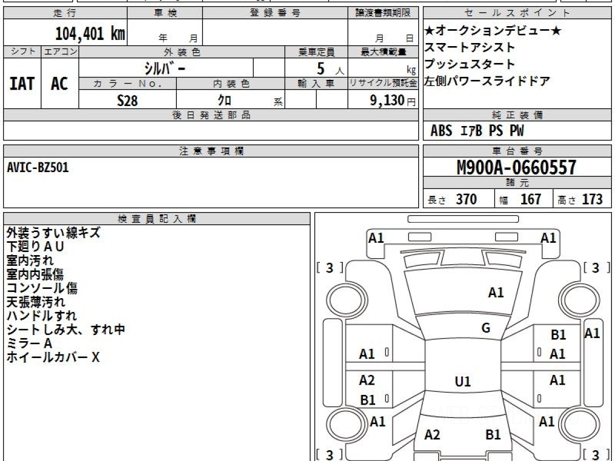 Оценка аукциона: 4, что гарантирует хорошее техническое и косметическое состояние кузова и салона.