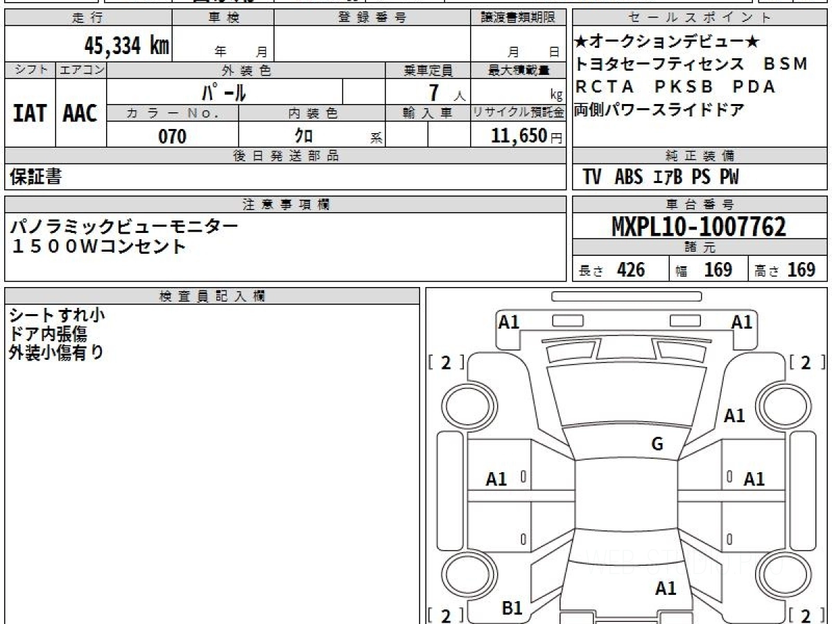 Оценка аукциона: 4.5, что гарантирует хорошее техническое и косметическое состояние кузова и салона.