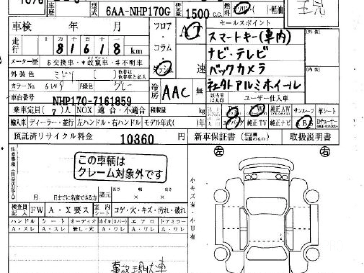 Номер кузова: NHP170G.