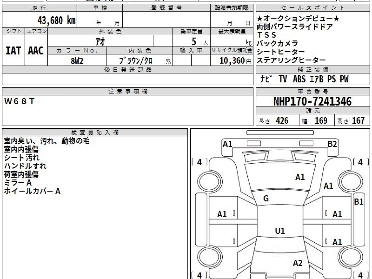 Оценка аукциона: 4, что гарантирует хорошее техническое и косметическое состояние кузова и салона.
